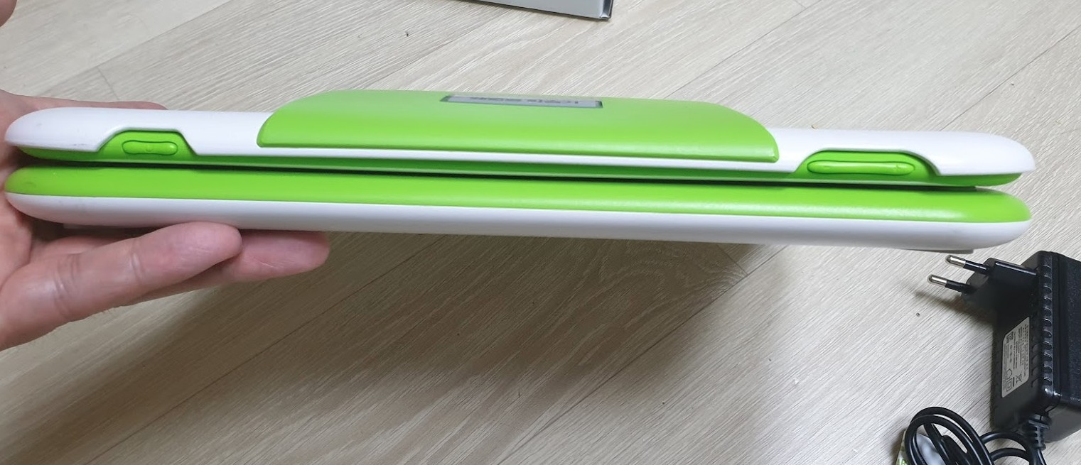 와이즈캠프 학습기 옆모습 입니다. 처음에 저 버튼이 학습기를 열때 사용하는건줄 알았늗네 실제로는 전원 버튼과 볼륨 버튼이였습니다. ^^ 와이즈캠프 학습기는 살짝 열어서 노트북 여는것처럼 열면되더라구요.