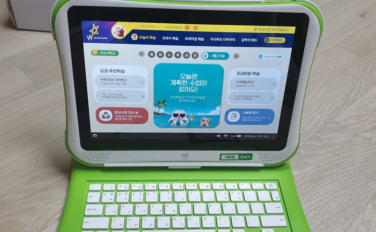 저희 아이는 오늘의 학습이 없는날에 프리미엄 학습에 있는 다양한 컨텐츠에 푹 빠져서 꾀 오랫동안 와이즈캠프를 잡고 있었습니다. 평상시에 보지 못했던것들이 많아서 그런지 좋아 하네요. 그리고 확실히 아이에게 화면 위치나 각도가 조절이 되니 원하는 자세로 볼수가 있어서 조금더 편하게 오래 보는거 같아요.