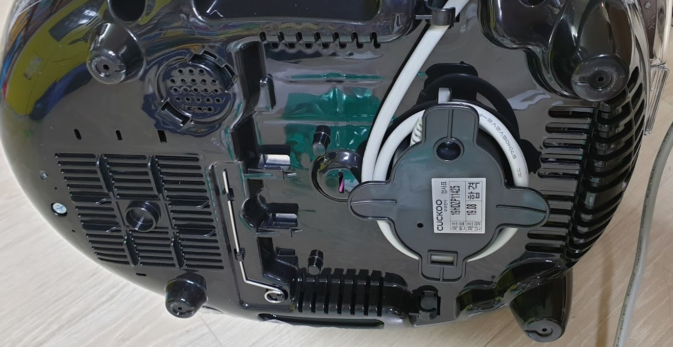 쿠쿠10인용압력밥솥 CRP-AHP1010FD 의 경우에는 하단에 전원 케이블을 감아서 길이 조절이 가능합니다. 줄이 그냥 나와 있으면 선 정리 하는것도 신경이 쓰이겠죠?