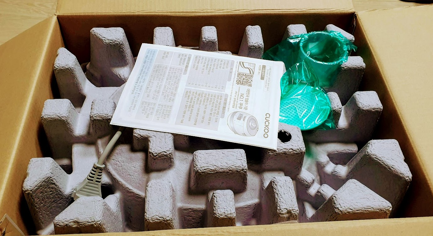 제품을 개봉을 하니 상단에는 주걱, 계량컵, 설명서가 윗부분을 들어오리리니 본체가 나오네요. 디자인은 마음에 들었습니다. 10인용 밥솥중에서는 제일 괜찮은 디자인인거 같기도 하네요. 뭐.. 사람에 따라 다르겠지만 쿠쿠 디자인을 개인적으로 좋아 하는 편이라서요. 아이도 많고 하다보니 자주 밥을 하는것도 일이라서 이왕 사는거 10인용으로 산건데요. 생각보다 크기가 그리 큰거 같지는 않더라구요.