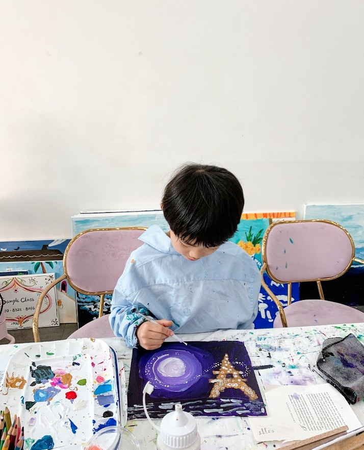앞에서 보셨겠지만 물에 비친 달과 에펠탑인거 같지 않나요? 아이도 그림 굉장히 이쁘다고 많이 좋아해서 지금도 집에 잘 걸어 놓고 있네요 ^^ 그림은 처음부터 끝까지 선생님과 50분 동안 1:1 로 진행이 되었습니다. 저는 잠깐 나가서 시간 보내고 왔는데 원래 아이가 떨어 지는걸 싫어 하는 성격인데 혼자서도 잘 앉아서 그리더라구요 ^^