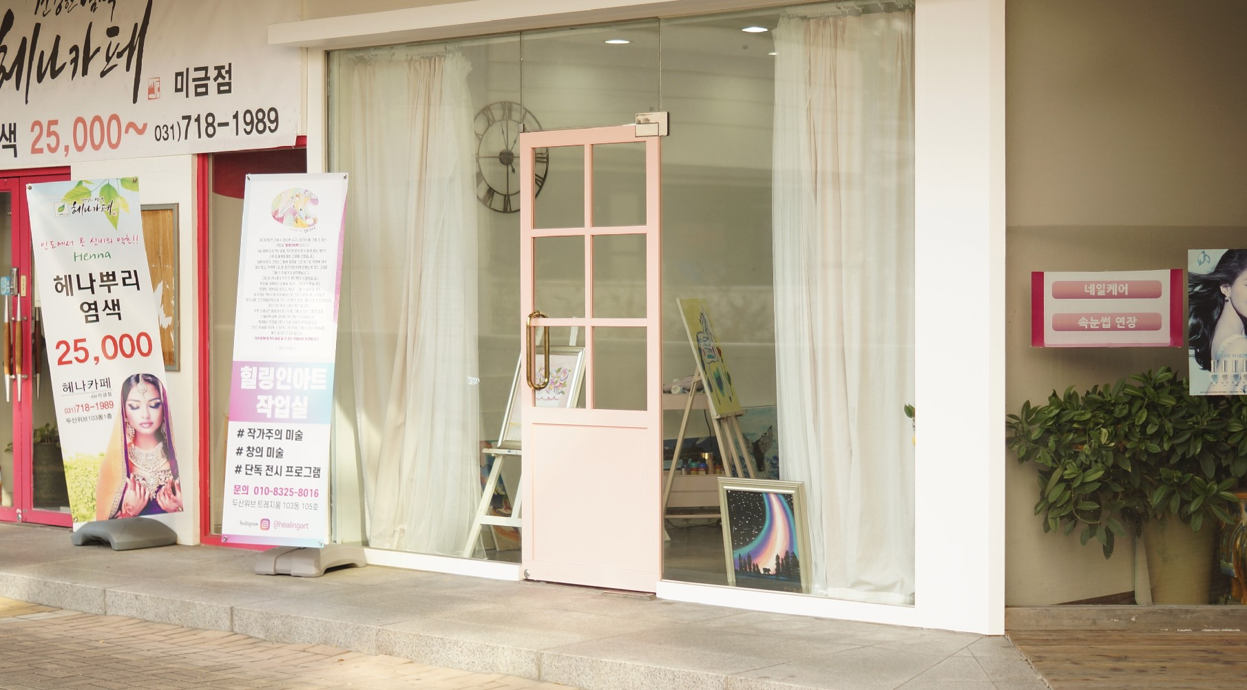 힐링인아트는 분당 정자역 근처 두산위브트레지움 103동에 위치해 있습니다. 주상복합 아파트라서 주차 하기는 어렵지 않습니다. 방문을 103동 힐링인아트라고 하시면 됩니다. 주차는 지상에 하시는게 좋아요. 주차 하신후에 103동 아래쪽에 보시면 아래처럼 문이 이쁘고 통유리로 되어 있는 곳이 힐링인아트 예요 ^^