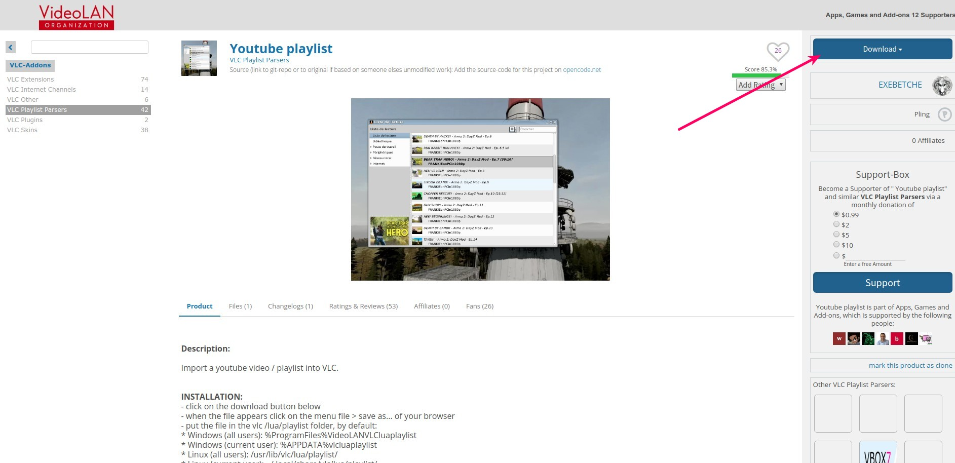 VLC Player Youtube Playlist Addon 설치 하는 방법
