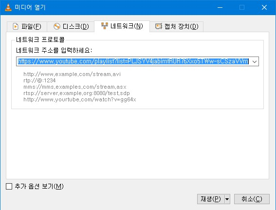 VLC 플레이어 에서 유튜브 플레이리스트 재생하기