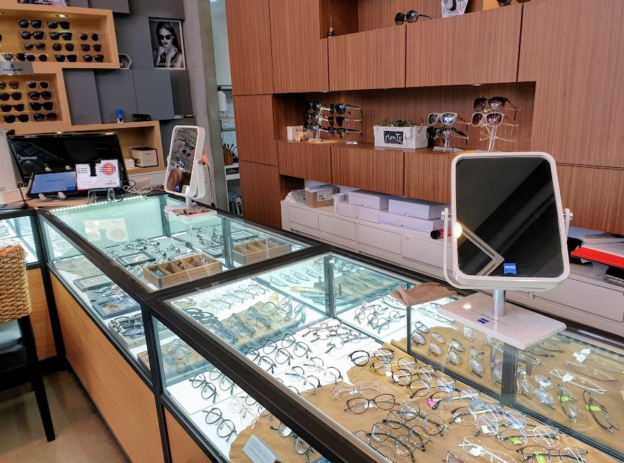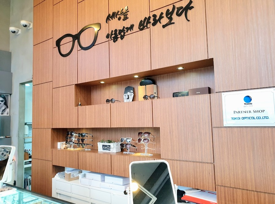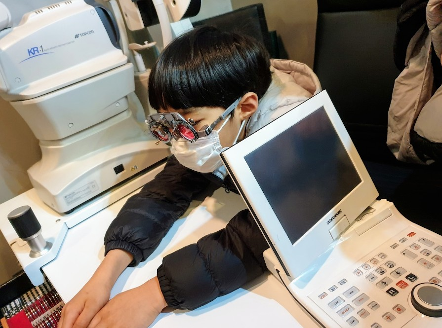 매장 안쪽 사진은 많이 찍어두지를 안았네요. 꾀 다양한 안경테들이 보였는데 저희는 일단 색약안경을 알아 보려고 갔던거라서 바로 검안실(?) 에 들어가서 아이가 크로마젠 색약안경을 끼면 얼마나 달라지는지 확인을 했습니다.