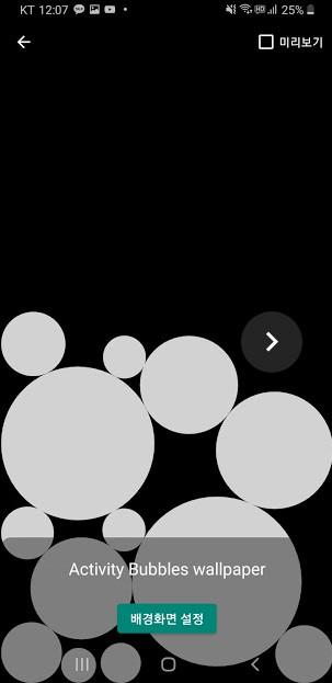 아래 보시시면 아시겠지만 정말 검은색 배경에 하얀색 버블만이 보입니다. 잠금해제 하면 아래로 떨어지는것도 볼수가 있는데요. 한가지더 있었으면 하는건 스마트폰을 기울이면 버블들도 움직여 줬으면 좋겠네요. 그러면 조금더 심심하지 안을거 같기도 합니다. ㅎㅎ
