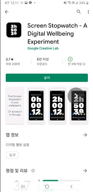 구글 플레이스토어에 보면 "Google Creative Lab" 에서 만드는 재미 있는 앱들이 있습니다. 그중에서 최근에 올라온 앱 두가지를 소개해 보려고 합니다. 두가지 모두 내가 얼마나 스마트폰을 사용하는지 단편적으로 볼수 있는 앱들이며, 배경화면으로 이용이 가능한 앱입니다. 멋진 이미지의 배경화면은 아니지만 가끔은 내가 얼마나 스마트폰을 자주 오래 사용하는지 알수 있는 앱들이니, 한번 설치해서 사용해 보는것도 좋을거 같아요.