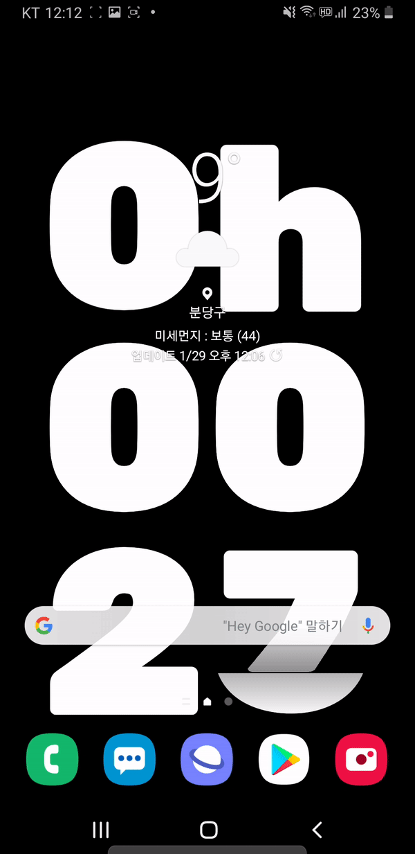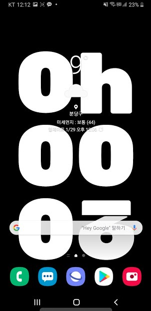 실제로 적용을 하면 아래와 같이 정말로 단순하게 검은색 배경화면에서 시간만 카운트가 되는걸 볼수가 있습니다. 그래도 아주 간단하게 내가 얼마나 스마트폰을 이용했는지 확인할수 있는 앱이네요 ^^