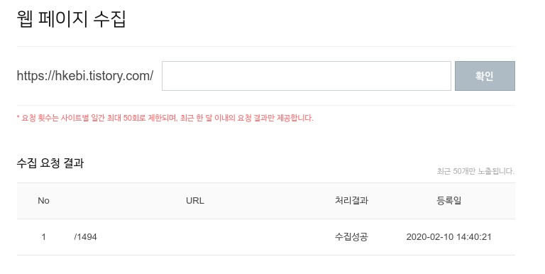 첫번째, 네이버 웹마스터 도구에서 웹 페이지 수집요청 하기