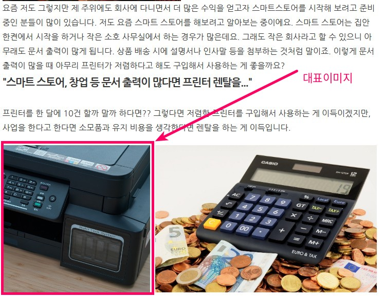 두번째 방법으로 첫번째 이미지를 대표이미지로 등록을 하라는 거였는데요. 역시 이 방법도 딱히 네이버 검색에서 썸네일이 노출이 되지는 안았습니다.