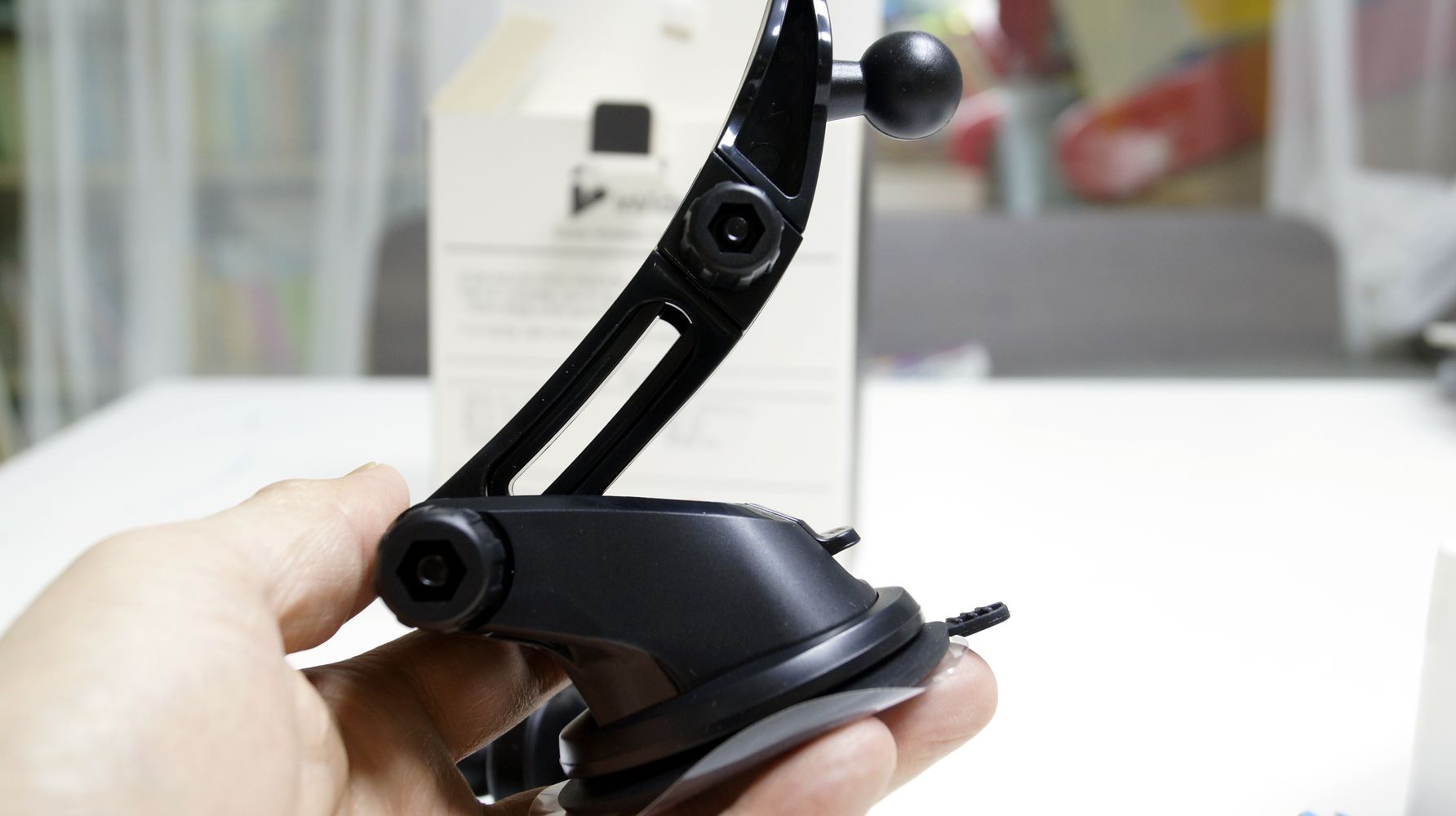 마지막으로 차량에 설치 하기 전에 대쉬보드에 연결을 할지 송풍구에 연결을 할지 선택을 하신후에 맞는 거치대를 뒤쪽에 연결해 놓으시면 됩니다. 연결을 하신후에 각도 조절후 조여주면 단단히 고정이 되어서 운행중에 움직이는걸 줄일수가 있습니다.