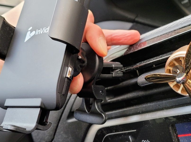 마지막으로 대부분의 차량용 무선 충전기가 지원하지만 차량 시동이 꺼진후에도 버튼을 눌러서 핸드폰을 빼낼수가 있습니다. 아래 움직이는 GIF 이미지를 보시면 아시겠지만 시동이 꺼진후에 전원이 공급이 안되는 상태에서도 버튼을 누르니 가이드가 풀리는걸 볼수가 있습니다. ^^ 2~3 번 정도까지 되더라구요.. ㅎㅎ