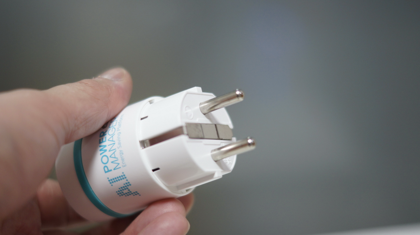 플러그는 심플하게 생겼습니다. 가운데 AI Power Manager 라고 적혀 있고 LED 가 들어 오는 버튼이 하나 있습니다. 아래쪽에는 콘센트에 꼽는 부분이 있고 위쪽에는 다른 가전제품을 꽂을수 있는 플러그로 되어 있습니다.