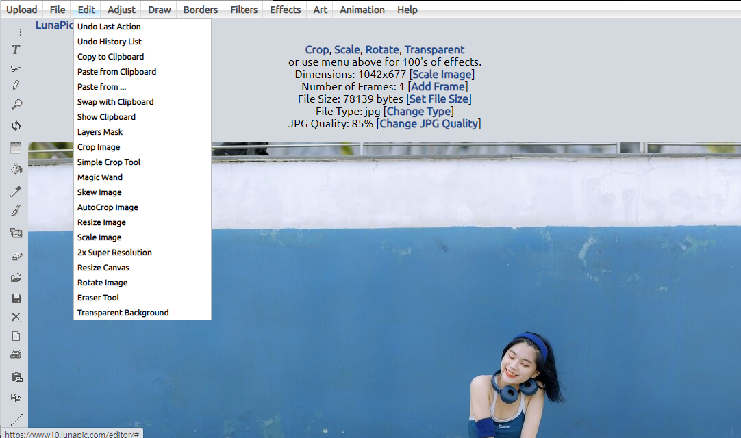 Lunapic 은 많이 알려져 있지는 않은거 같은데 무료로 사용이 가능한 온라인 이미지 에디터 입니다. AI 를 이용한 방법은 아니라서 약간의 수동작업이 필요하지만 배경화면을 지우는데 사용 할수도 있습니다. 무료로 이용이 가능한대신 광고가 조금 보이네요.