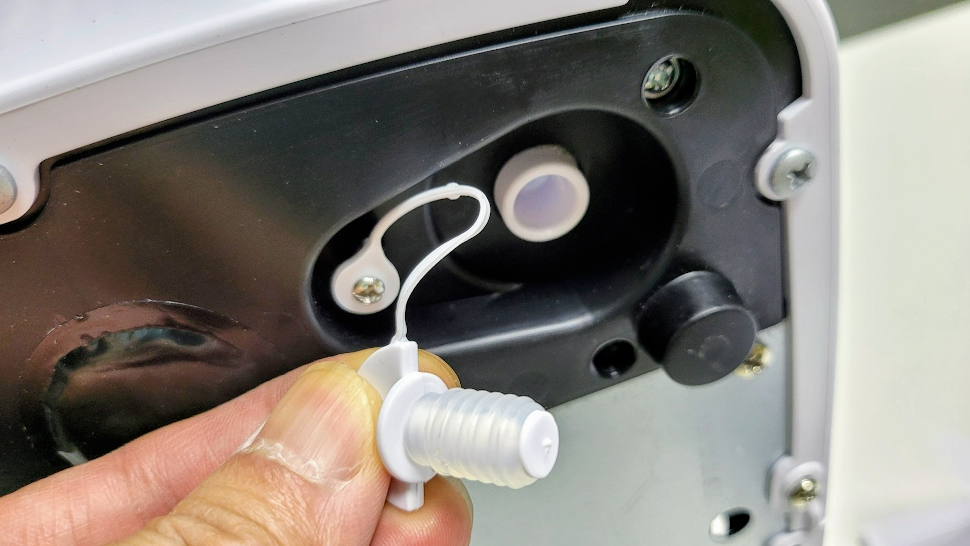 그리고 아래 사진에서 작은 동그라미가 보이시나요? 이게 바닥에 있는 배수 마게 입니다. 저 부분을 열어서 물을 뺄수가 있습니다. 사용을 않 하시거나 하실때 제품을 뒤집기 보다는 마게를 제거해서 아래쪽으로 물을 빼시면 될거 같아요.