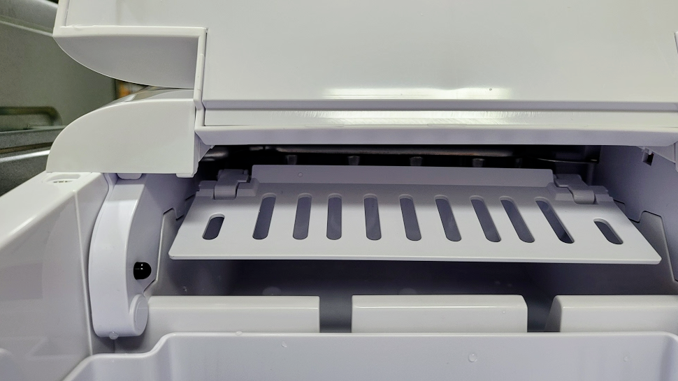 얼음이 완성이 되면 아래 보이는 바구니에 얼음이 모이게 되는거죠. 그리고 앞에서 잠깐 말했던것처럼 이 바구니를 들어 올리면 아래쪽에 물을 넣을수 있는 탱크가 있습니다.