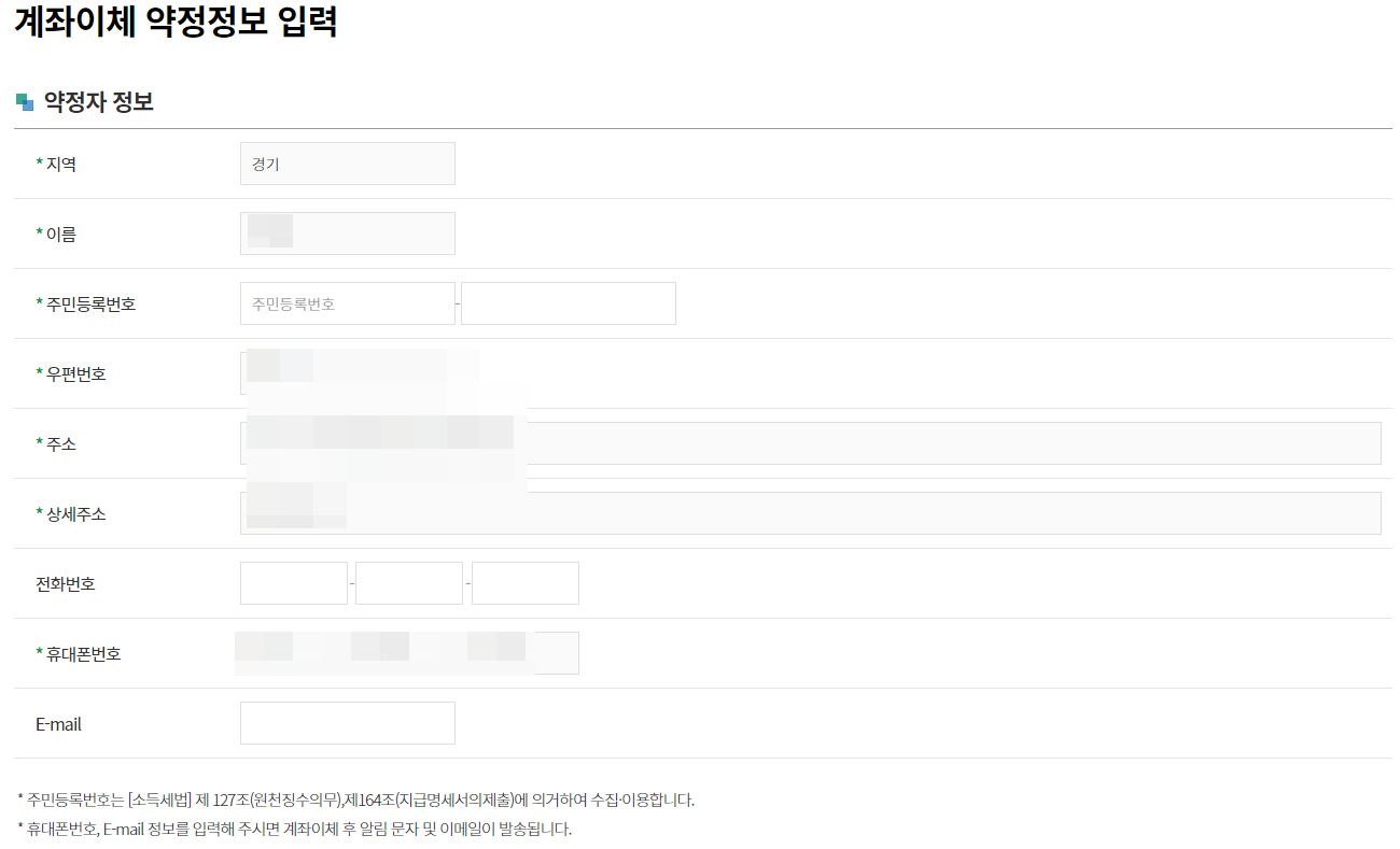 등록을 할때 아래와 같이 대상자 확인 및 약정정보를 입력을 하시면 됩니다. 그리 어렵지 않게 입력 하실수 있을거에요.