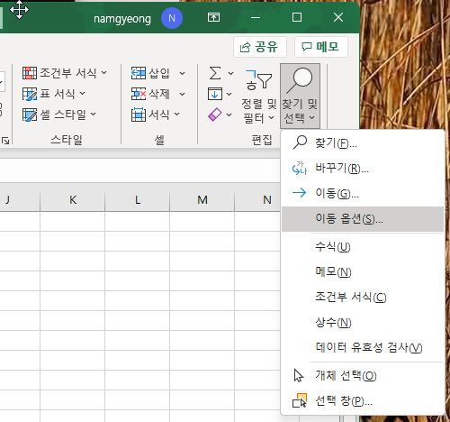 그러면 메뉴중에서 "이동 옵션" 을 찾을수가 있습니다. 이동 옵션에서 각 열마다 다른 값을 찾을수 있는 옵션이 있습니다.