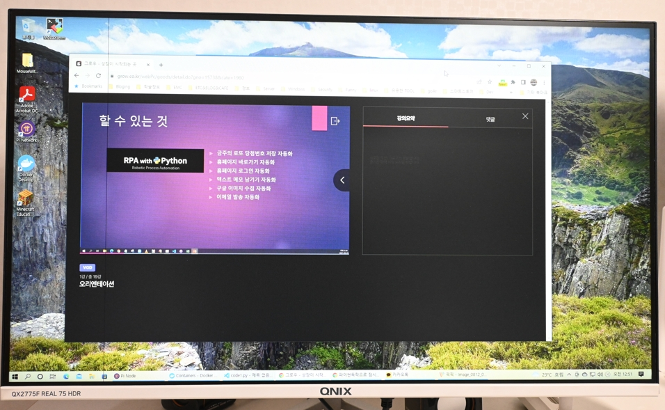 저는 이번에 그로우에서 " 파이썬 실무 자동화 " 라는 강의를 들어 보았습니다. 파이썬을 처음 배우는 분들을 위해서 기본적인 파이썬 문법과 개발을 위한 환경 구축까지 배워 볼수 있는 강의 입니다.