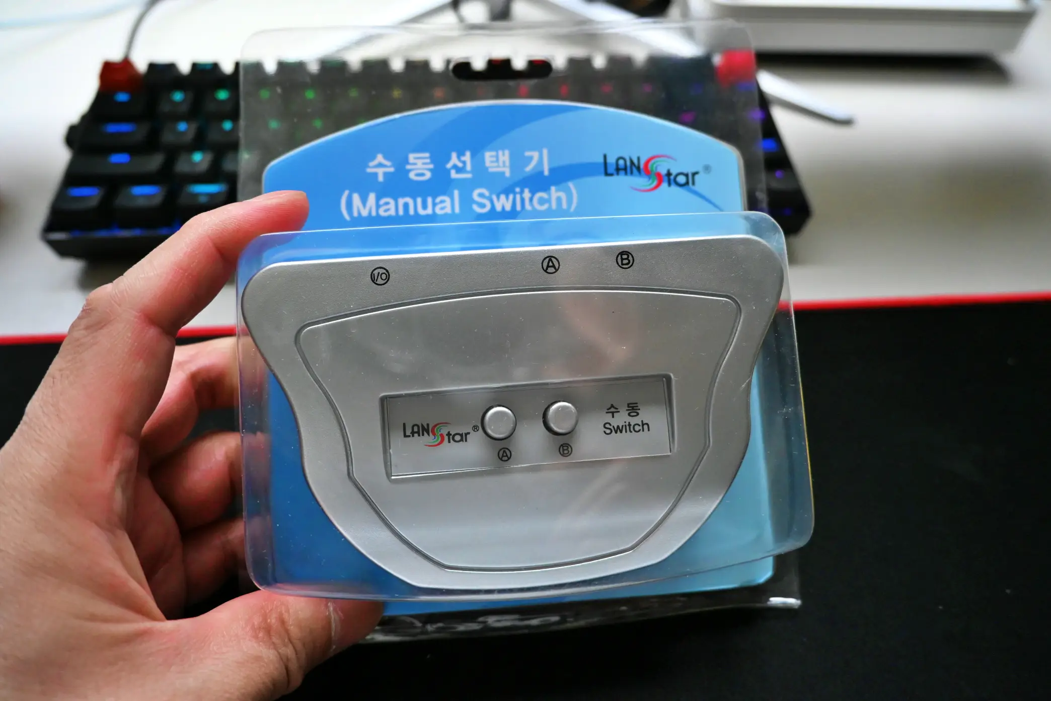 제품을 보면 랜스타 수동선택기 라고 되어 있습니다. 말 그대로 수동으로 버튼을 눌러서 선택을 할수 있도록 만든 제품이라고 보시면 됩니다. 그래서 가격도 5200원으로 정말 저렴해요.