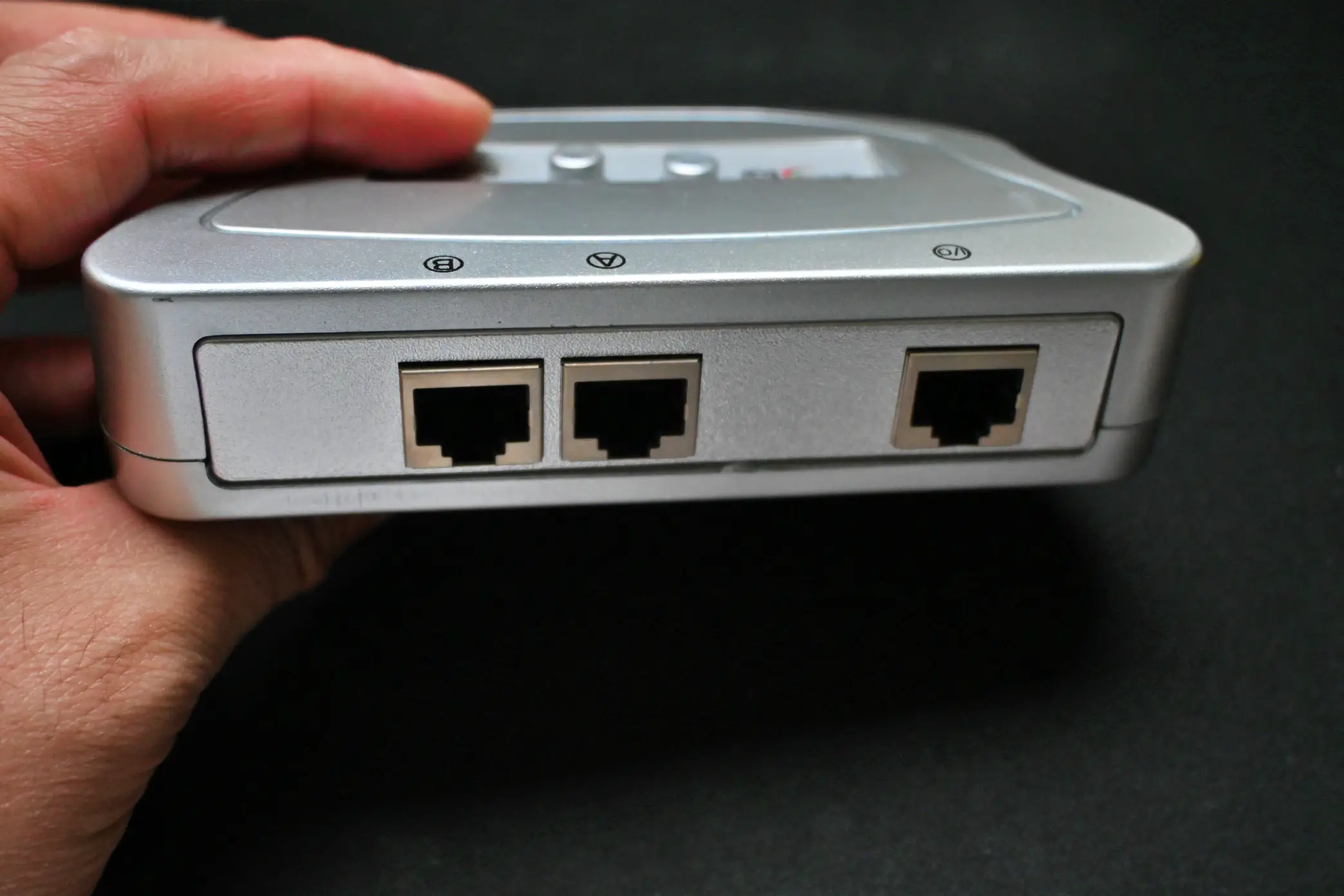 개봉해서 보시면 보시는 것처럼 버튼이 2개가 보이고 I/O , A , B 표시가 되어 있는 UTP 케이블을 연결을 할수 있는 RJ-45 포트가 보입니다. 딱히 뭔가 기능이 더 있거나 하지 않기 때문에 무게도 굉장히 가볍습니다.