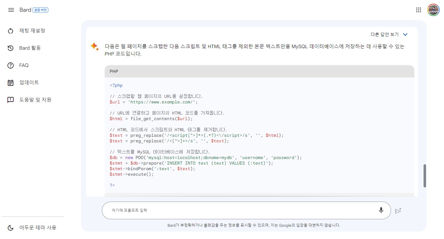 그래서 ChatGPT 와 같은 모델을 사용하는 Bing 등을 이용을 하시면 대체 할수는 있습니다. 하지만 뽑아주는 내용을 보면 바드가 조금더 자연스러워 보이네요. 빙 같은 경우 그냥 정보를 뽑아 주는 정도로 보여 집니다.