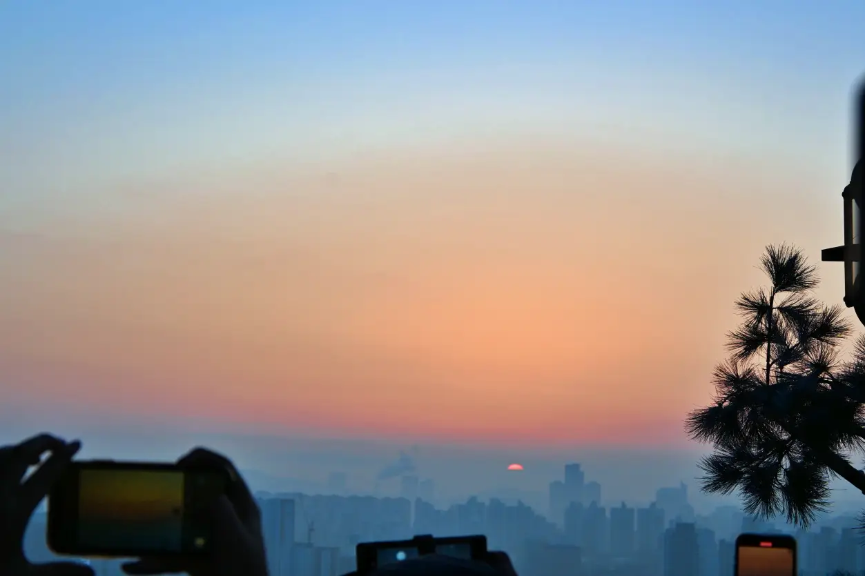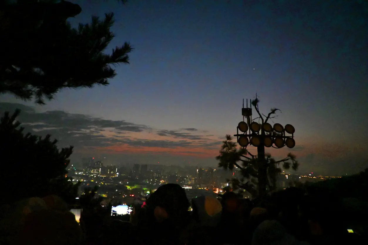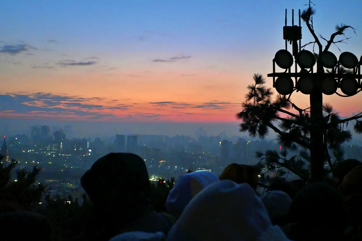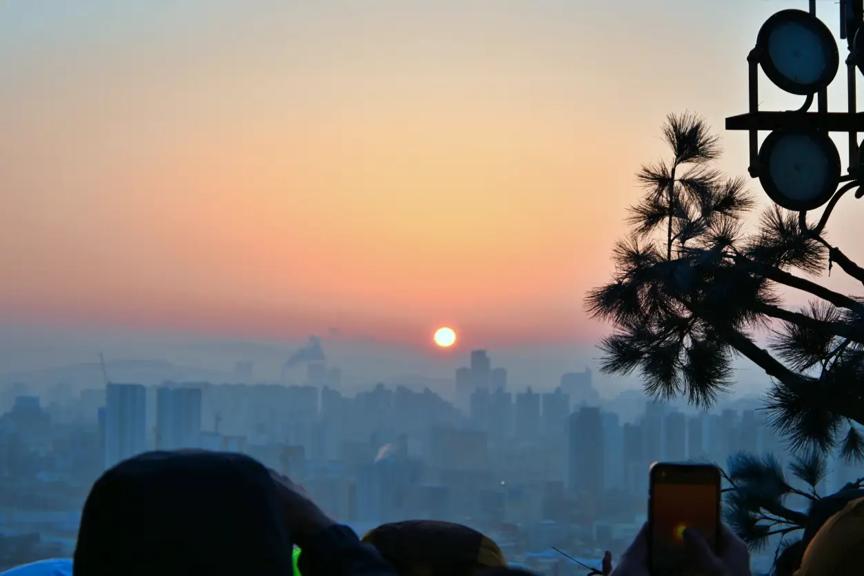 6시 정도에 화성행궁 공영주차장에 도착을 했는데 벌써 많은 사람들이 주차를 해놓아서 겨우 주차를 하고 서장대로 올라가기 시작했습니다. 서장대까지 천천히 걸어 올라가니 20분 정도 걸렸던거 같아요. 올해 첫해는 7시 40분 전후로 뜬다고 해서 여유있게 올라 갔습니다.
