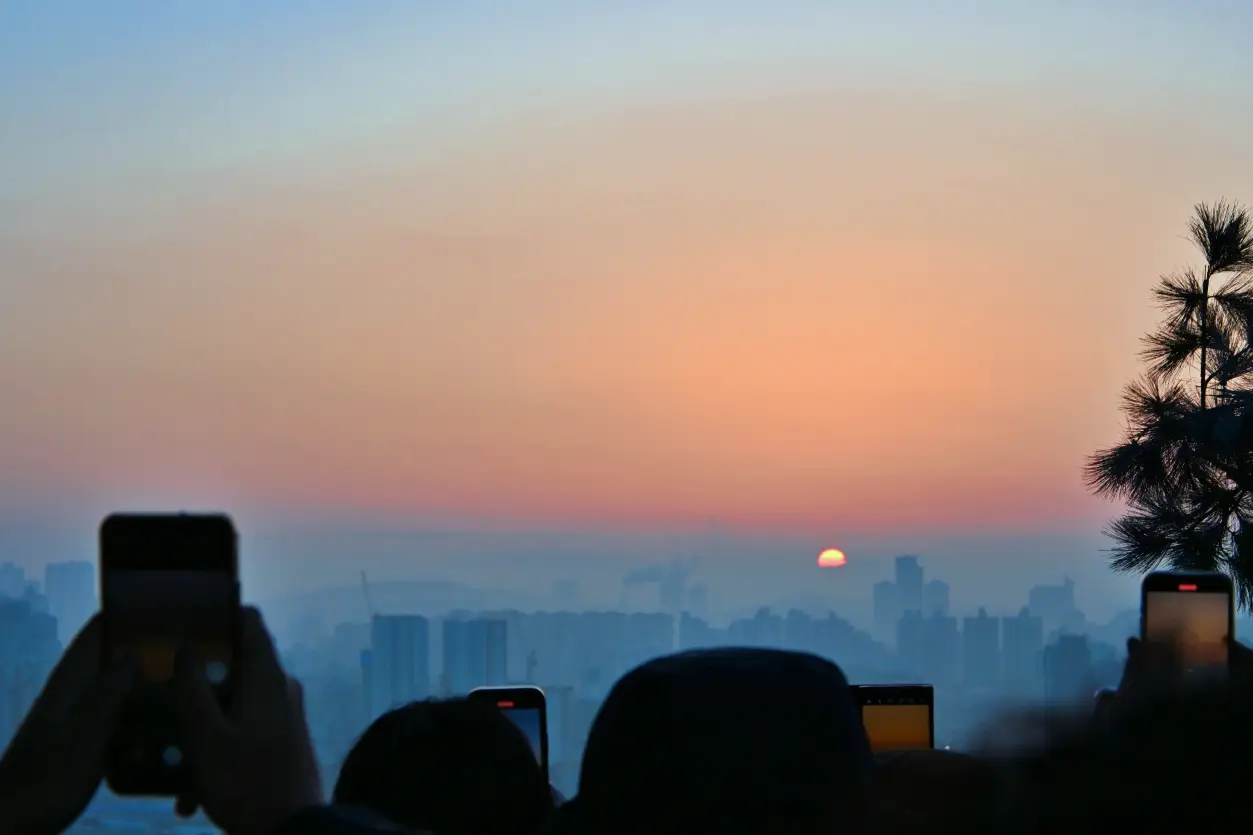 한참을 기다리다 드디어 해가 살짝 보이기 시작을 하네요. 2024년 새해 첫 해돋이 해가 정말 이쁘게 뜨더라구요. 이런걸 찍으려면 망원렌즈가 필요한거 같습니다. 실제 눈으로 보면 조금더 이쁜데 사진을 잘 못찍은거 같아요. 왠지 상당히 감동적인 느낌이기는 했는데 많은 인파 때문에 제대로 보기는 좀 어려웠던거 같기도 합니다.