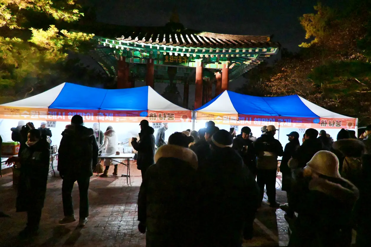 벌써부터 많은 분들이 서장대로 오르고 계시더라구요. 평상시에는 이 시간에 이렇게 많은 분들이 올라가는걸 보기는 힘들거 같지만, 새해 첫 해돋이고 행사도 있고 해서 그런지 많은 분들이 찾았습니다.